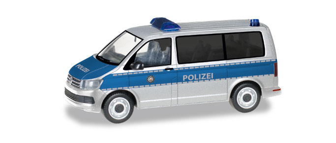 In NRW wird der VW T6 vornehmlich innerstädtisch als Streifenwagen eingesetzt. Das Modell von Herpa erscheint mit der blau-silbernen Farbgebung in einer einmaligen Auflage.